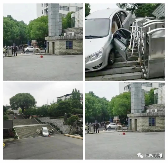 前不久,長(zhǎng)沙一小車(chē)在湖南師大附中校門(mén)倒車(chē),因操作不當(dāng),與兩名行人發(fā)生刮蹭后,又與一學(xué)校門(mén)衛(wèi)崗?fù)ぁ⑸炜s門(mén)相碰,結(jié)果沖破校門(mén)的電動(dòng)伸縮門(mén)至校內(nèi)臺(tái)階上,造成行人輕微受傷,車(chē)輛、設(shè)施受損。